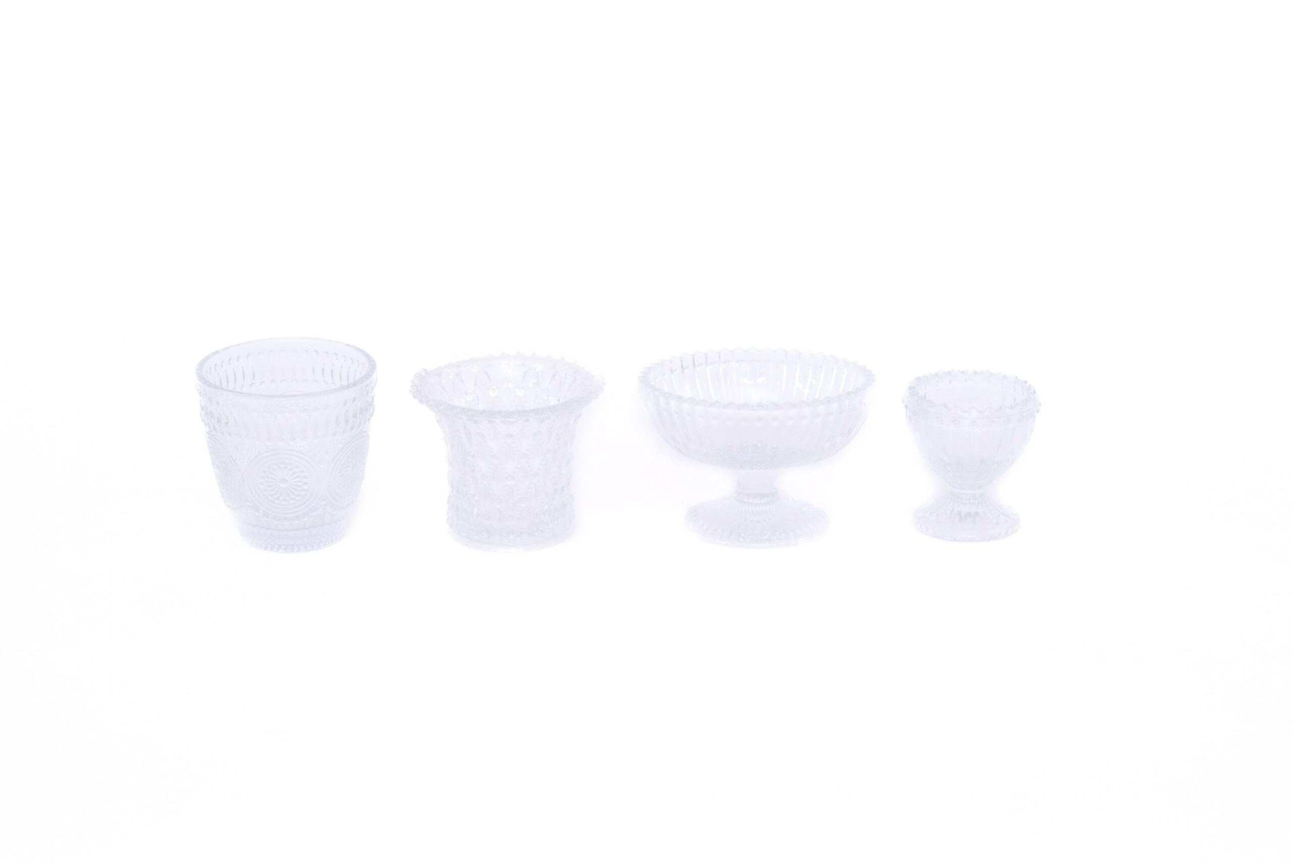 Taça mini transparente com elegante padrão em relevo, ideal para bebidas ou sobremesas.